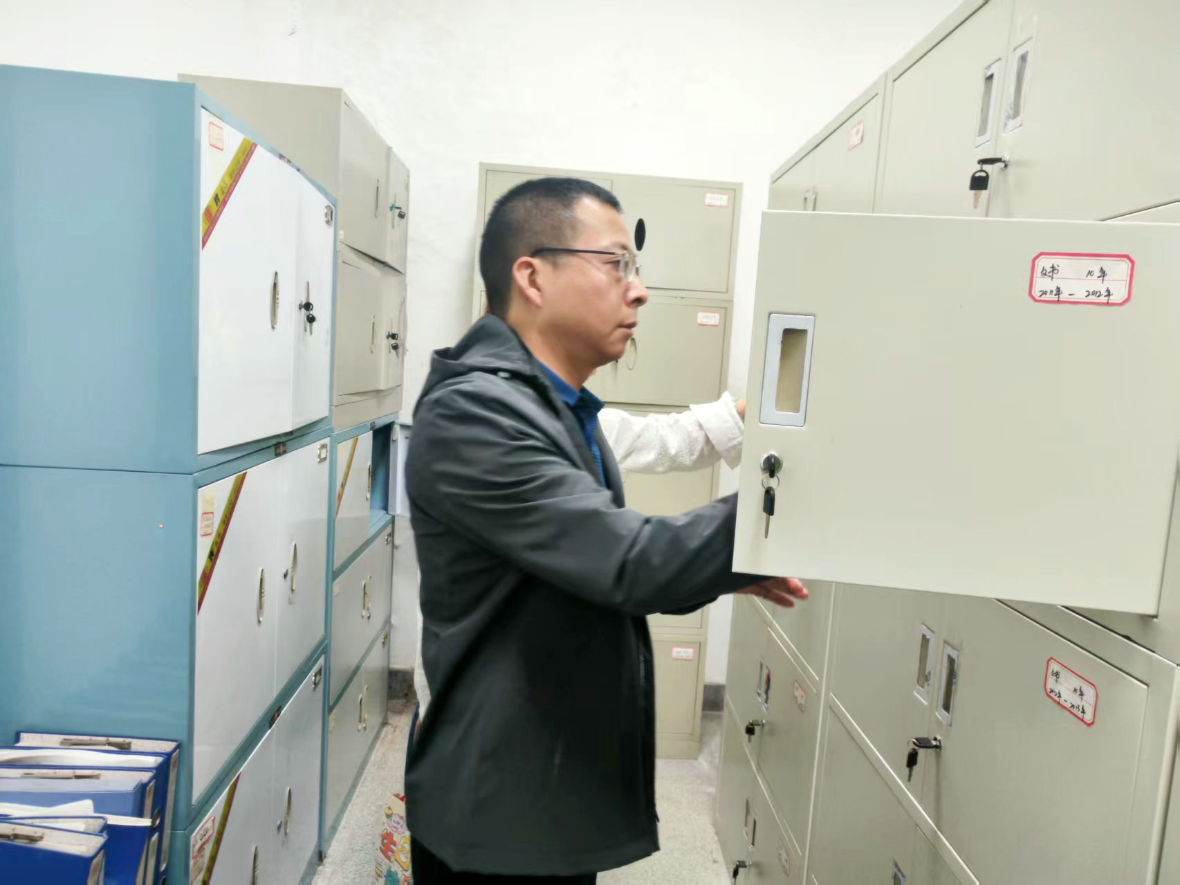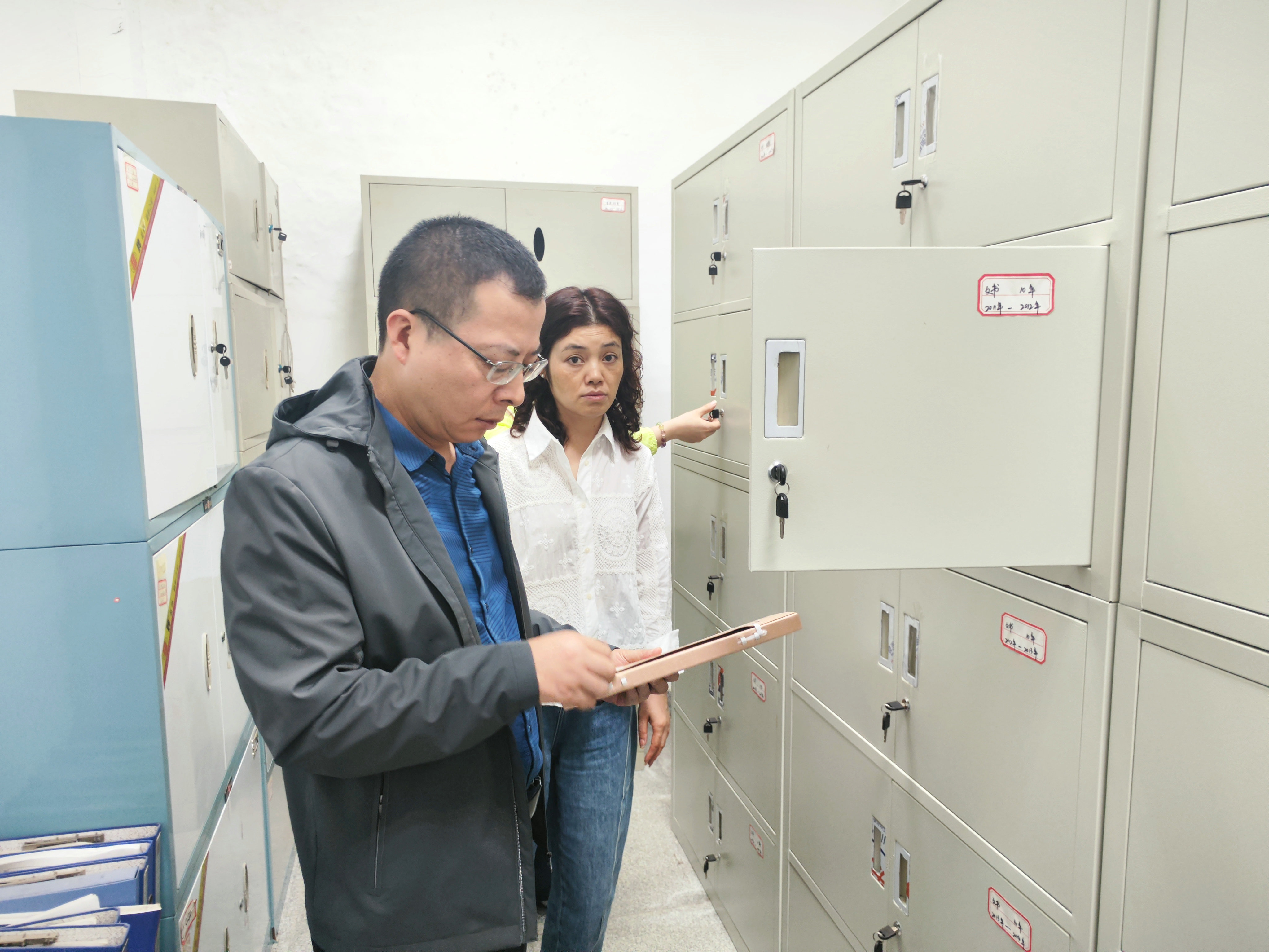 調(diào)研現(xiàn)場(chǎng),朱亞成一行先后查看了檔案室基礎(chǔ)設(shè)施建設(shè)、安全防護(hù)和視頻監(jiān)控等相關(guān)情況,重點(diǎn)抽查了各類檔案的歸檔、存儲(chǔ)、保管及查閱使用情況,全面掌握當(dāng)前檔案管理工作的實(shí)際現(xiàn)狀。