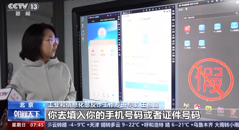 工業(yè)和信息化部反詐工作專班專家 王栩晨:這邊主要是需要你去填入你的手機(jī)號(hào)碼或者證件號(hào)碼,并且輸入你的密碼,它可能在這個(gè)App就會(huì)把你的手機(jī)號(hào)碼和證件號(hào)碼傳到它后臺(tái)的服務(wù)器中,詐騙分子就可以拿著個(gè)人信息進(jìn)行后續(xù)的詐騙。